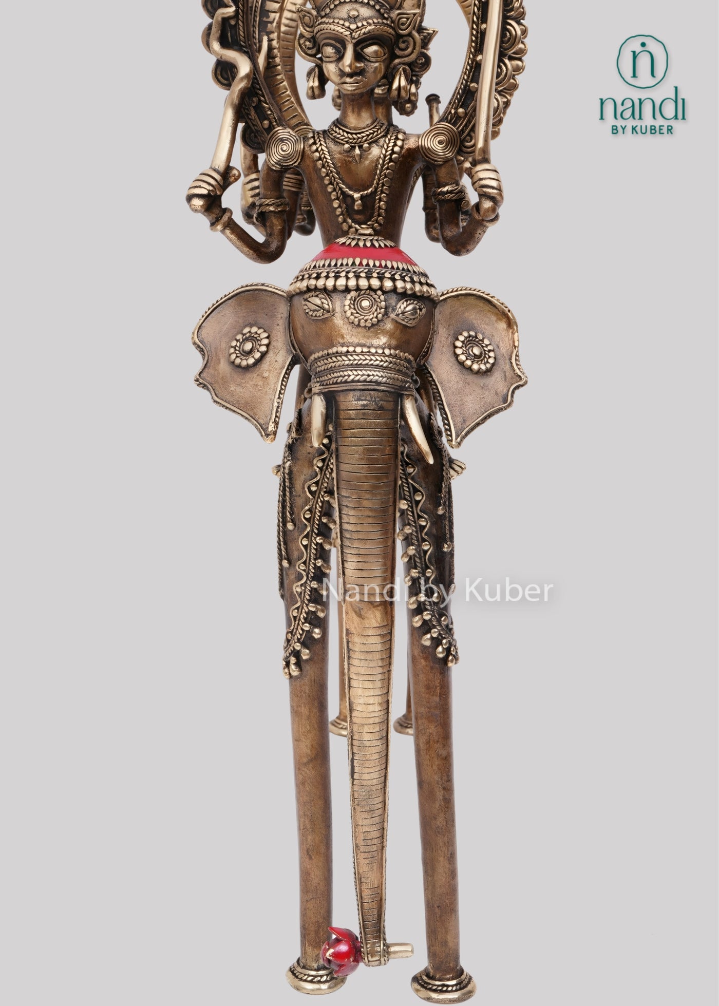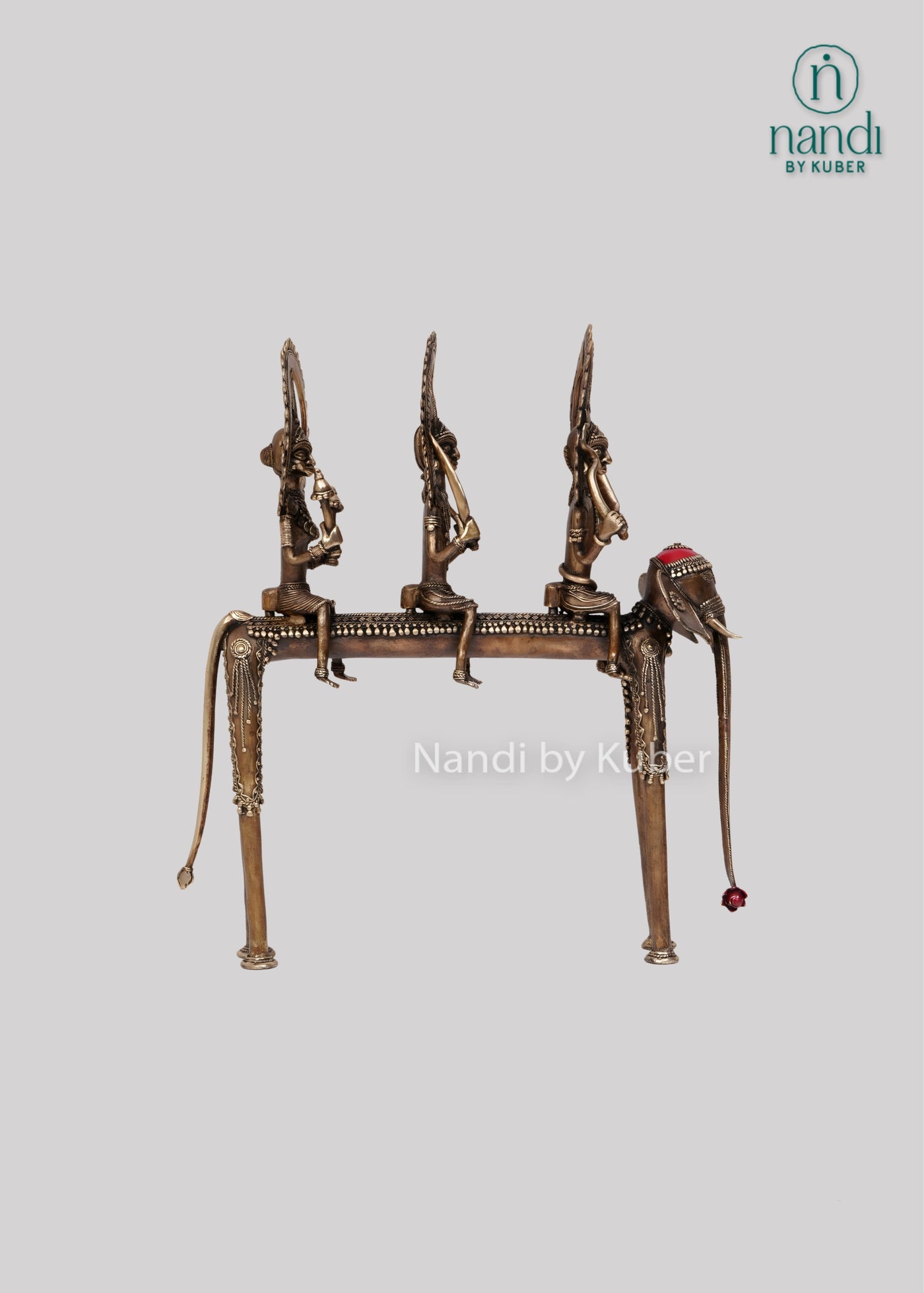 This finely handcrafted Brass Elephant Ram Darbar beautifully showcases traditional Indian artistry and spiritual symbolism. Made from solid brass with intricate detailing, it depicts the regal presence of the elephant alongside the Ram Darbar, reflecting devotion and grandeur. Standing 21 inches tall, it makes an elegant addition to home altars, pooja spaces, or curated décor displays.