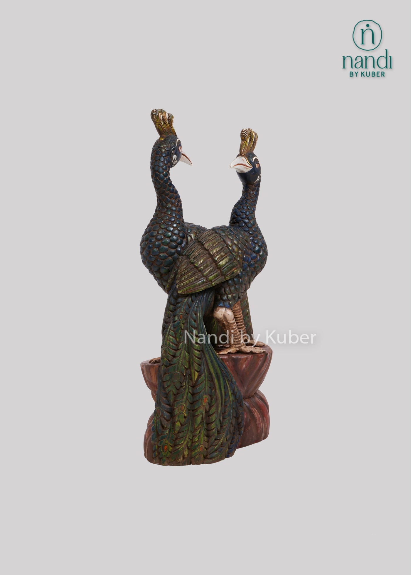 This elegant Wood Double Peacock sculpture is a testament to exquisite craftsmanship and natural beauty. Carved from premium wood with meticulous detailing, it captures the grace and majesty of two peacocks in a striking pose. Standing 38 inches tall, it makes a stunning centerpiece for home décor, luxury interiors, or curated accent displays.