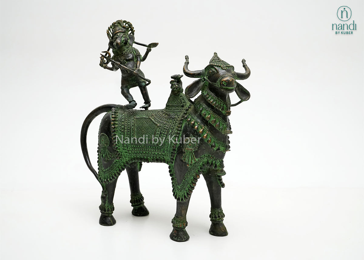 A majestic Brass Nandi Sitting Ganesha idol crafted with exquisite detailing. This divine sculpture beautifully depicts Lord Ganesha seated on the sacred Nandi, symbolizing wisdom, strength, and auspicious beginnings. Perfect for enhancing spiritual spaces or elevating home décor with a traditional touch.
